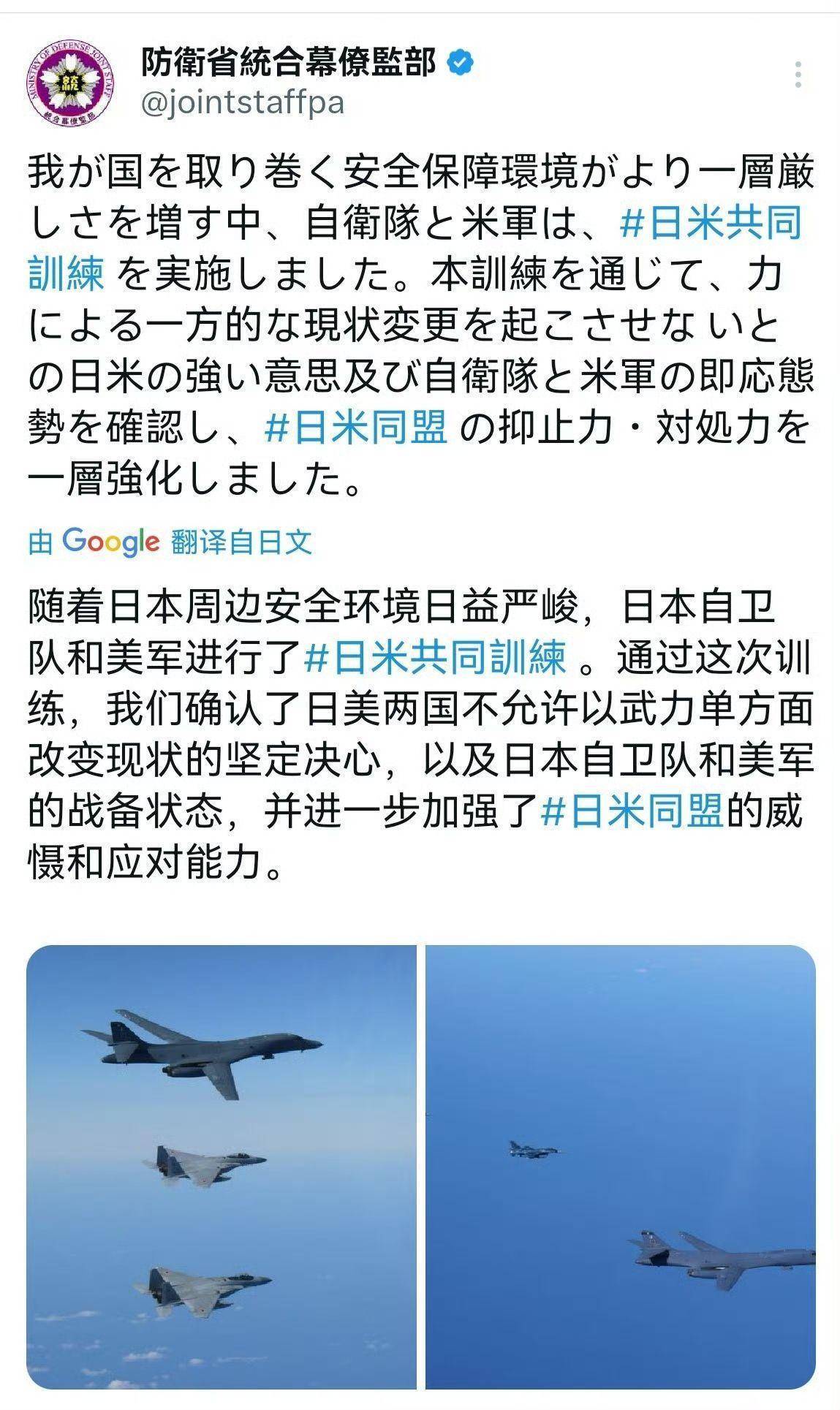 可以这么说,美国对中国军事实力的评估,要远比日本客观,美国政府将“无意与中国爆发冲突”这句话挂在嘴边,日本政府则是满脸的无所谓。当然,美国虽然暂时没胆子跟中国打仗,但是挑拨中国跟日本打仗的胆子还是有的,而且还很大。就在中日最近关系紧张的时候,美国果然就展开小动作了。11月15日,美国空军的B-1B战略轰炸机抵达日本三泽空军基地,与日本航空自卫队进行联合演习。