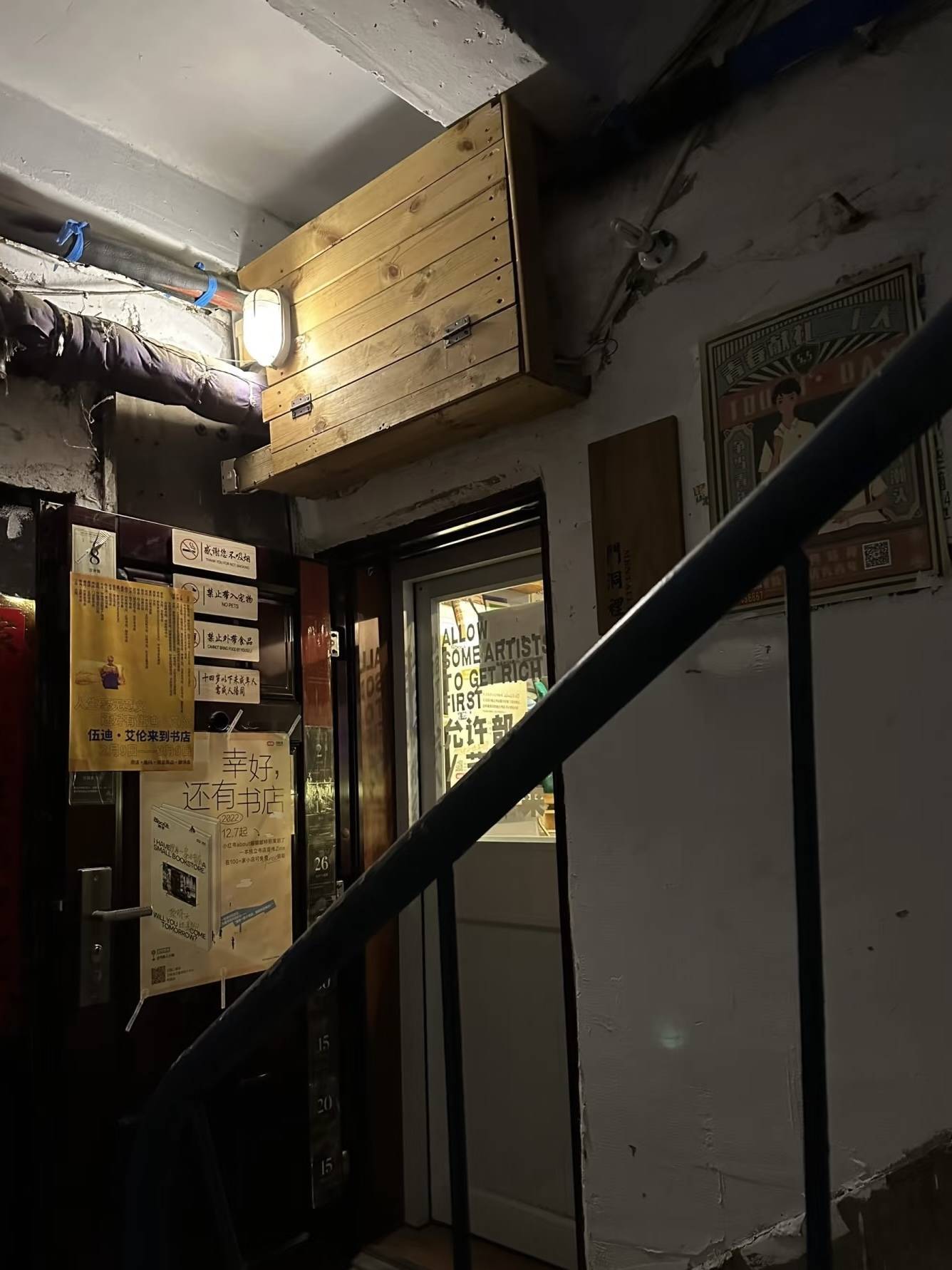 在世界读书日前夕,记者来到这家“藏”在门洞里的“网红”书店。书店位于辽宁省本溪市平山区,穿过一个老旧小区的门洞,顺着外挂楼梯爬上二楼,推开一扇贴着海报、透着暖黄灯光的门,“门洞里”独立书店便进入视野。层叠错落的书籍、温暖柔和的灯光、复古舒适的沙发,以及本溪元素的文创,让这家书店充满特有的文艺气息。