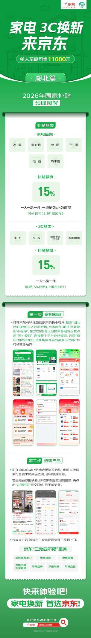 五一上京东焕新福利拉满,服务不打烊!趁着小长假给家里来场全面升级,依托京东国补福利,省心又省钱。湖北消费者直接上京东 APP 搜索 “湖北以旧换新”,领补贴、选好物、享速送速装,轻松完成居家焕新,欢乐度假期。