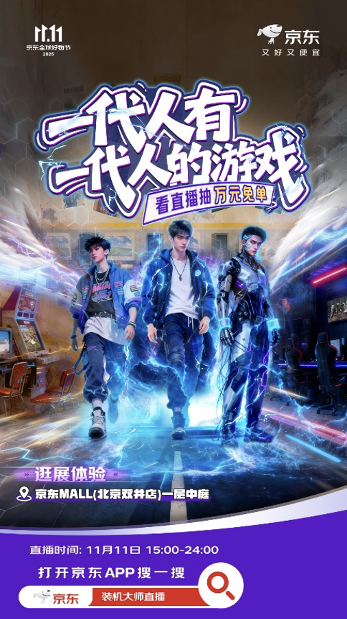 无法亲临现场的玩家也可通过直播同步参与精彩。11月11日下午3点,京东APP搜索“装机大师直播”,即可进入直播间“穿越时空”,云端逛展的同时还有机会赢取万元免单福利。当晚6点,MOD大师邢凯将在“装机讲堂”环节分享独家DIY作品与配件清单,游戏大神还将现场秀装备、讲故事,为观众带来实用干货与动人回忆。
